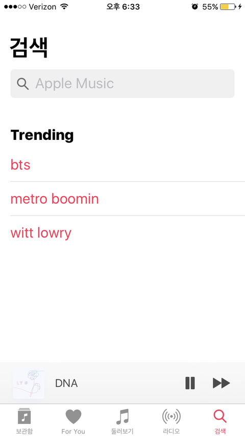 미국사는데 아플뮤직 튠즈 써치 들가기만해도 트렌딩이다