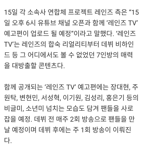 이 개설되었고, 돌아오는 수요일부터 데뷔 전엔 주 2회씩, 데뷔 후에는 주 1회씩 매번 업로드됨! 1년간 계약했단 말도 많은데 너무나 기대되는것!!