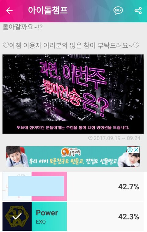 아이돌챔프 앱 다운받아서 밑에 진행중인 투표에 챔피언송에서 투표하면되!