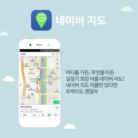국내 길찾기 최강으로 꼽히는 어플! 네이버 지도어디를 가든, 무엇을 타든이 어플만 있다면 대중교통도 쉽고 빠르게 검색해서 이용할 수 있다.