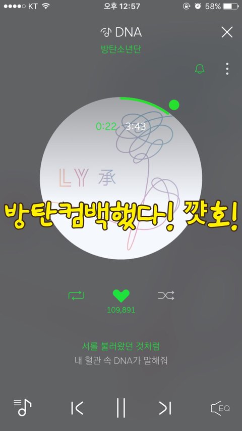 방탄의 색깔이 어찌 됐네 하면서 운운하는 글들을 다른데서 봐서 곰곰이 생각해보니 아직 나오지 않은 음악과 컨셉은 이미 다 짜여져 있는 거야! 방탄의 이전 노래들과 다르고 가벼워졌다고 해석해야 할 게 아니라 더 폭넓게 확장되는 과정 중의 한 부분을 공개한 것 뿐이라는 거!!