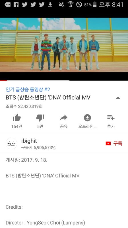 음원 뮤비 공개된지 하루밖에 안 됐는데 2천 200만 뷰 ㄷㄷ;; 조카 미쳤다 한 달 안에 1억뷰는 물론 2억뷰까지 찍을 수 있을 듯
