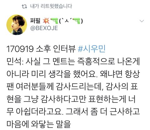 시우민 성품이 보이는 감동 인터뷰ㅠㅠ