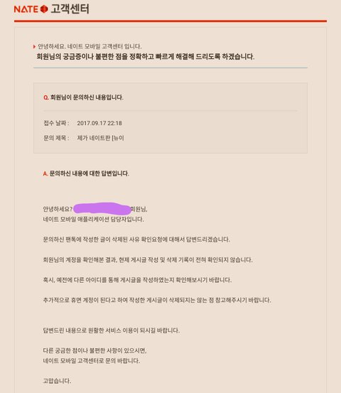 우선 지난 번 글 자동삭제 건에 대해 네2트로부터 바보같은... 답변을 받았습니다