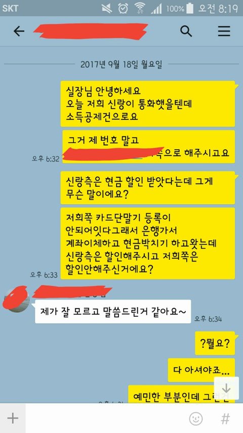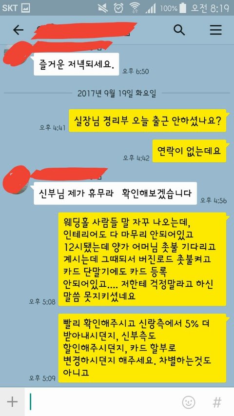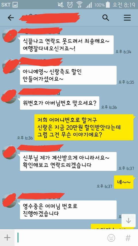 예악 실장님한테 카톡했더니 신랑측 할인 안받았다고 헛소리하세요~