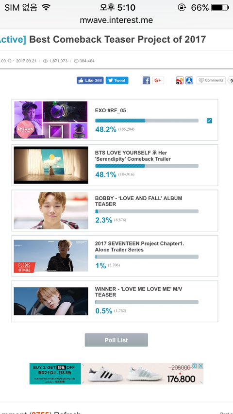 이거 마마 베스트컴백티저 1위 뽑는거야