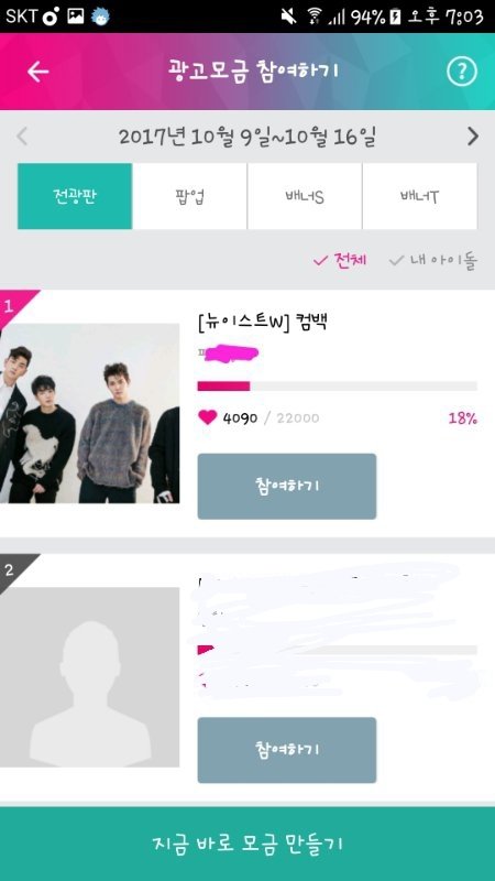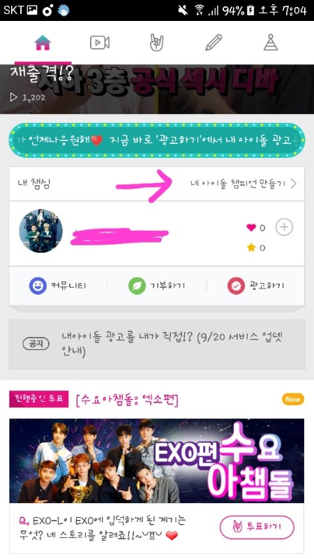 하트챔심으로 투표하기 누르면 나와