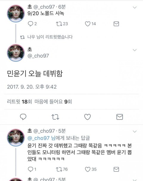 윤기오늘 데뷔함 ㅠㅠㅠㅠㅠㅠ