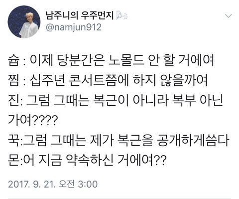+10주년땐 꾹이가 복근깐다고 약속함ㄱㅇㄷ