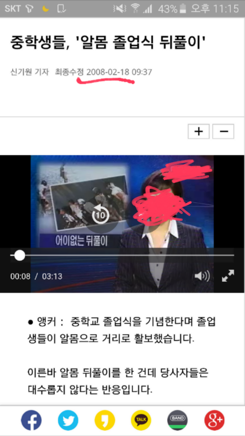 2008년 뉴스인데 저때 난 막 초딩입학했을때.....알몸졸업식이란 일진들끼리 별 ㅁㅊ게 있었네?