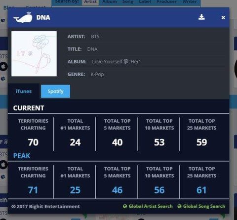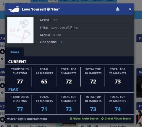 아이튠즈 아티스트 전세계 1위 / 싱글 전세계 1위 / 앨범 전세계 1위 / 앨범차트 73개국 1위 / 송차트 25개국 1위