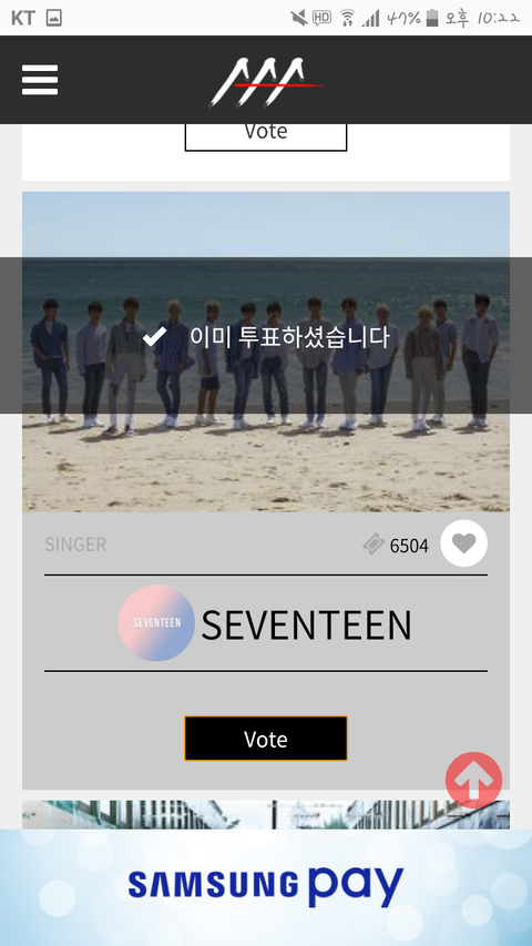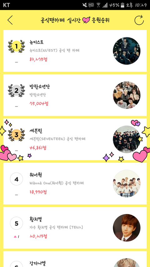 오랜만에 들어가봤는데 3위야 잊고 있었는데 이제부터라도 계속 해야겠어 공카든 네이년이든 쓰리에이 투표 열심히 할려고 하는것 같은데 나하나쯤은 이라고 생각하지 말고 투표 꾸준히 계속 해서 꼭 상 받자!!