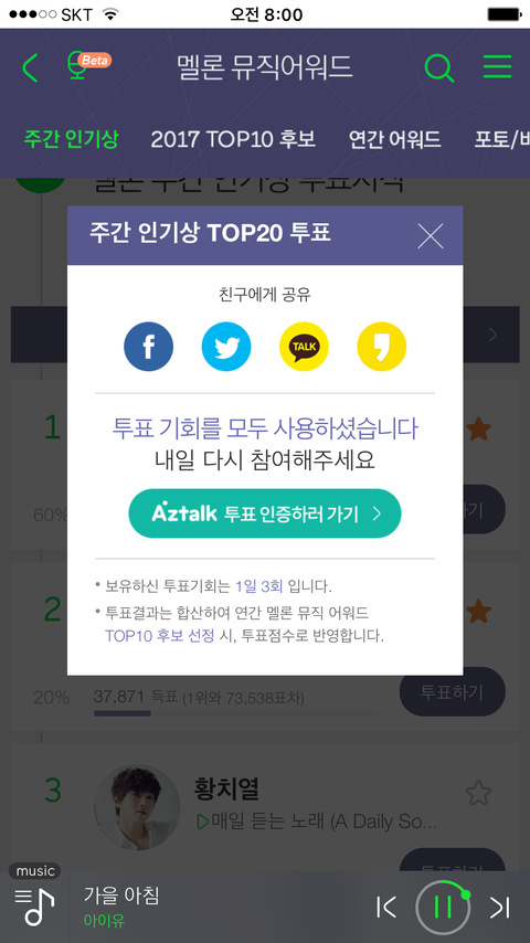 인간적으로 투표하자 ㅠㅠ 지은이 음원성적 높다고 우리 스트리밍 잘 안돌리는 거 아는데