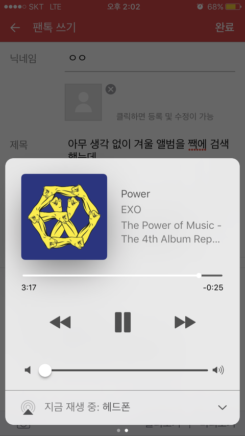 왜 타팬들이 난리인 건지 1도 모를 일. 야 근데 우리 겨울 앨범은 확실히 퀄이 졸라리 높아서 머글들도 꽤 듣더라 검색하니까 날씨 추워졌다고 엑소 겨울 앨범 플레이리스트에 넣는다고 하는 거 은근 많이 봄 음원 개조지자 음반도 ㅇㅇ 음반 말 안 해도 지금 짹 상태 보니 지릴 것 같긴 하지만