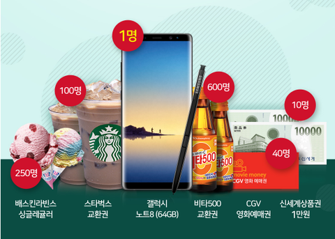 갤럭시노트8 등을 경품 당첨을 즉석 확인가능합니다