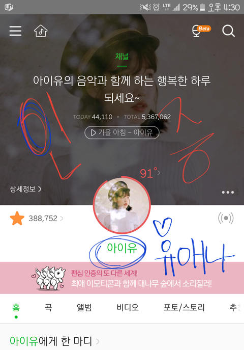 고마워 믿고듣는 아이유님! 언제나 노래 정말 좋아ㅠㅠ 본진 더더더 흥했으면 좋겠다 고마워!
