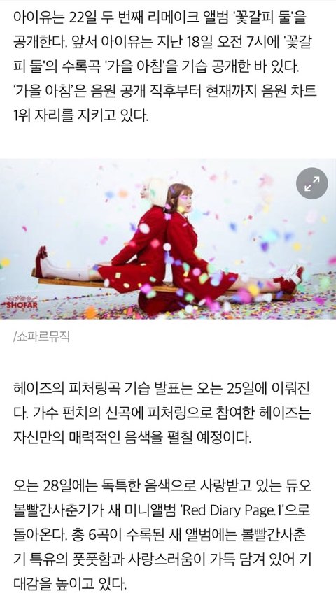 헐 아이유 헤이즈 볼빨간사춘기 동시컴백!!