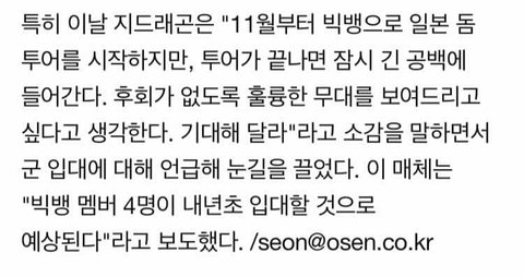 빅뱅 군입대 언급