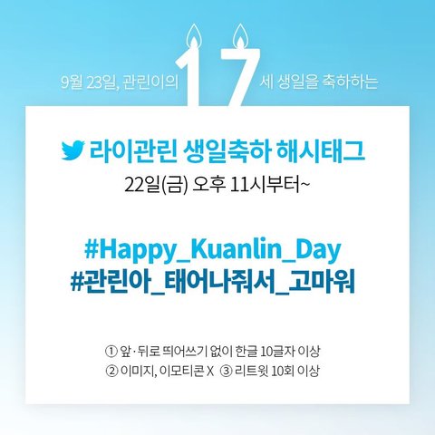 우리 실트 해시태그 기억해두고 꼭 해서 관린이생일날 하루종일~ 사람들이 볼수있게 하자! 관린이생일 기대된다 기대되!!