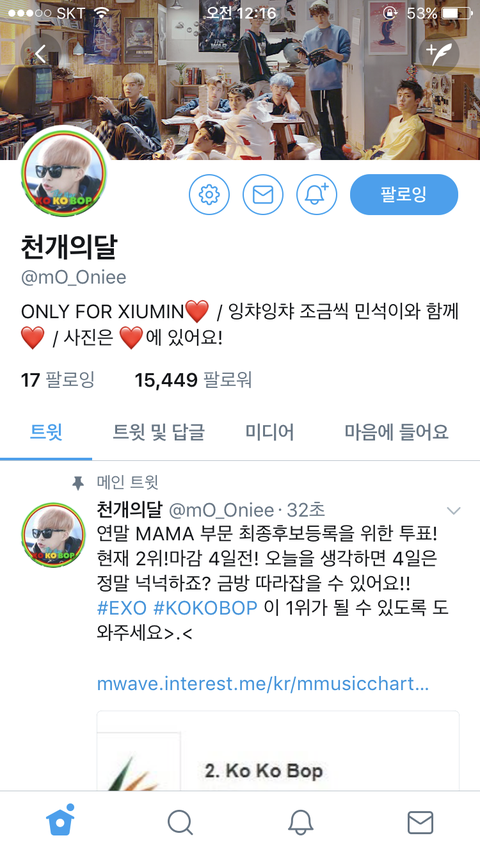 우리 투표한 것도 30분에 한번씩 상황 올려주고 끝나자마자 다른 투표 바로 메트올림..ㄹㅇ댓글정화랑 개별곡 다운도 ㅈㄴ해줌..내가 본 집마중에 독려 젤잘해