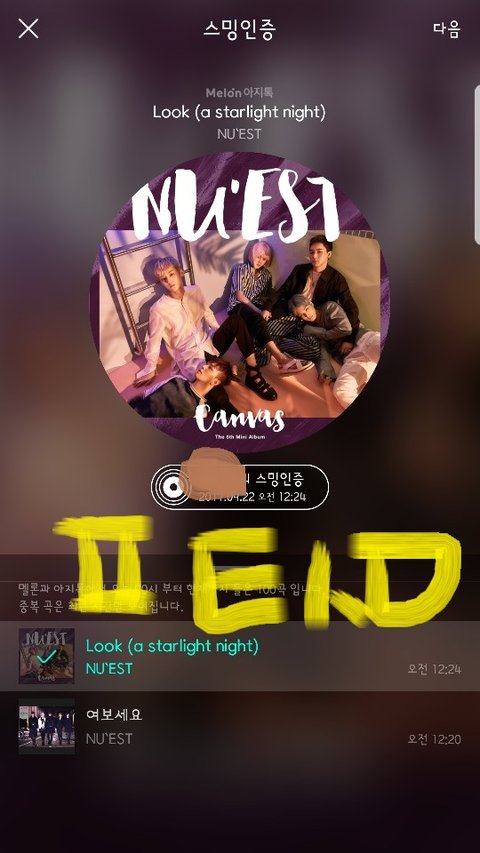 (스밍인증은 미안...... 12시 좀 넘어가면서 돌려서 고작 두곡뿐이야........ 분발할게)