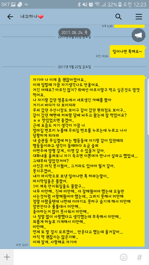 여기에 올리는 이유는 톡 내용을 여자친구가 봤으면 하고 많은 분들이 하늘나라에서 여자친구가 행복하길 빌어 주셨으면 하는 맘으로 글을 올려 봅니다..