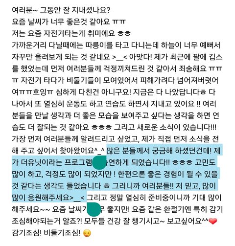 이렇게 자신이 직접 팬카페에 글을 올렸어ㅠㅠㅠㅠㅠ