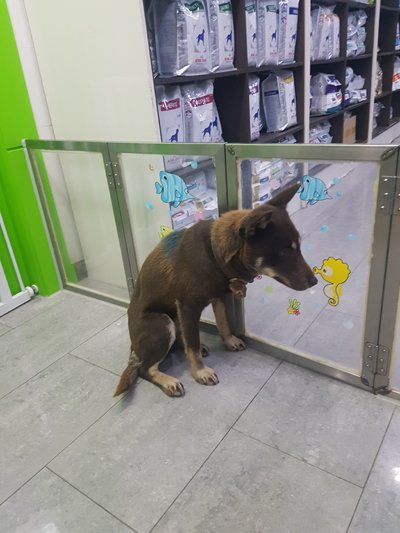 어제 성남 모란시장에서 탈출한것으로 추측되는 개가 보호소에 입소하였습니다.
