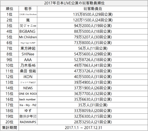 1위 산다이메 J 소울 브라더스 135만 8500명