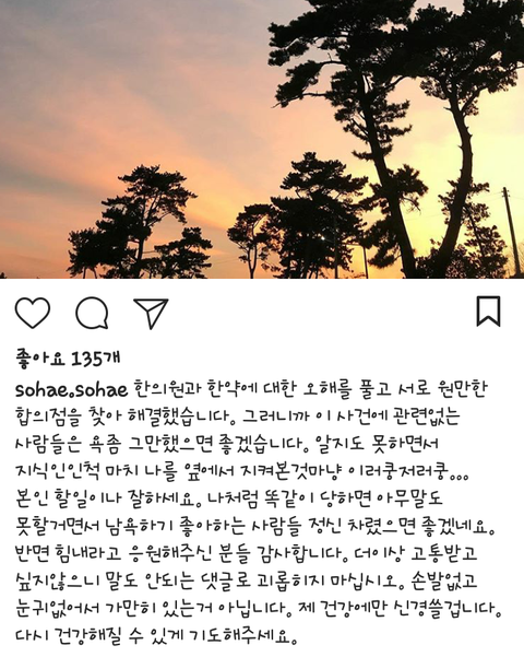 시간이 꽤 흐른 지금 논란의 게시물은 모두 삭제되고 저런 글 하나가 올라옴