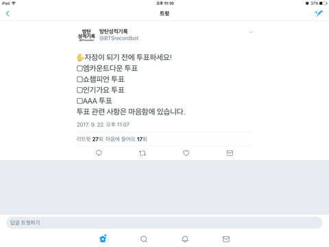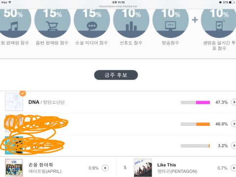 AAA는 지고있어 2000표차로 진짜 간발의 차이니까 빨리 1위 잡자