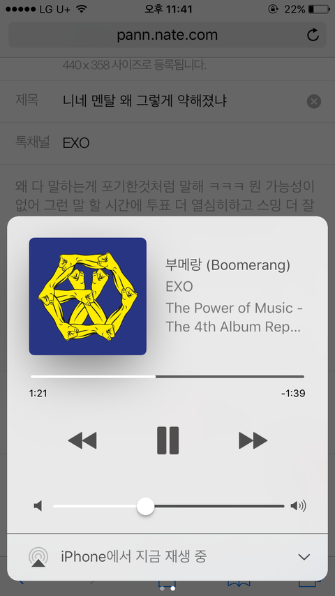 왜 다 말하는게 포기한것처럼 말해 ㅋㅋㅋ 뭔 가능성이 없어 그런 말 할 시간에 투표 더 열심히하고 스밍 더 잘돌리면 좋겠다 우리 이번에 성적 역대급으로 좋아