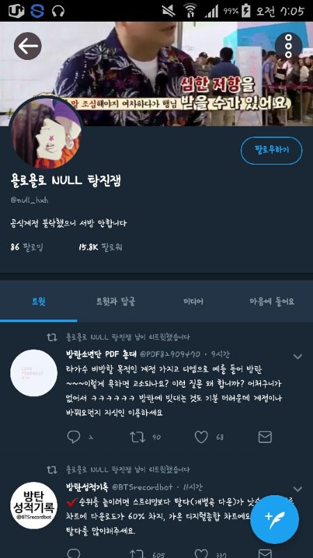 웬만한 에리들은 쟤 다 알고 신고도 꾸준히 하는데도 계정이 정지 처리 안 되더라 개 빡치게? 근데 팔로워 수 봐.
