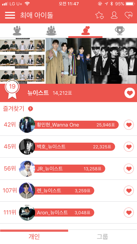 ❤️최애돌 접속>로그인>뉴이스트, 백호_뉴이스트, JR_뉴이스트, Aron_뉴이스트, 렌_뉴이스트 (미녀는 ㅇㄴㅇ으로 설정되어 있어서 뺐는데 넣어야 한다고 생각하면 댓글 달아줘)즐겨찾기>하트 충전소에서 하트 충전>하트 누르기❤️