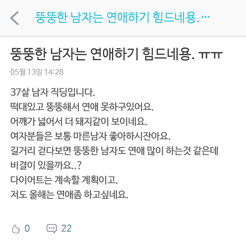뚱뚱한 남자는 연애하기 힘든가요?ㅜㅠ