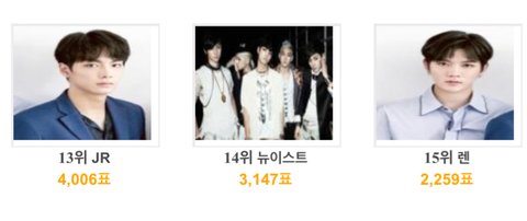 한국광고개인협회에서 네티즌이 뽑은 광고모델에 뉴이스트, 뉴이스트 JR, 뉴이스트 렌이 후보에 올랐는데 13, 14, 15위야ㅜㅜ