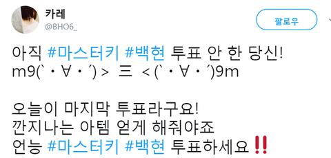 오늘 파이널이래~~ 아직 #마스터키 #백현 투표 안 한 당신! (하이퍼)