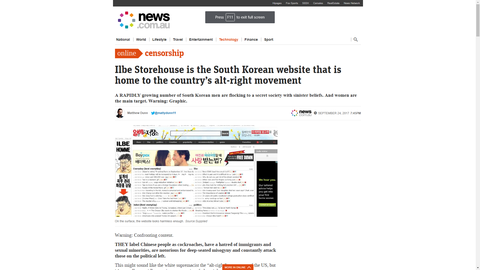 안녕하세요.항상 눈팅만 하다가 처음으로 글올리는 호주 사는 사람입니다.오늘 호주뉴스 사이트에서 뉴스를 보다가 웹사이트 일면에 뜨는 기사 중 하나를 스크린샷 뜬겁니다. 한국 뉴스도 자주 보는 편이라 일베에 대해서는 알고 있었는데이걸 호주 뉴스에서도 보게될줄이야...;;솔직히 쪽팔리네요.극우 성향인 것 부터 박근혜 대통령 만들기 위해 사람들 선동한것, 강간 모의하는것, 어린이 성추행 모의 부터 여혐 등등 화려한(?) 이력을 나열해 놓았네요.그냥 알고들은 계시라고 글 올립니다.