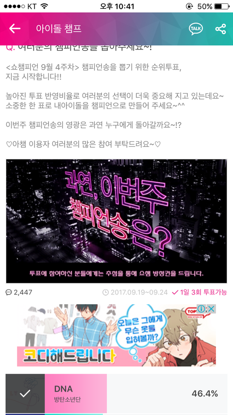 입으로 팬 거리지 말고 밀어붙여 투표하라고 ㅡㅡ
