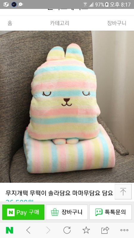 여러 종류가 있는데 내 기억으론 이 무지개색 담요가 있는 쇼핑몰이 여기밖에 없는데 지금 보니까 품절됐대ㅠㅠ
