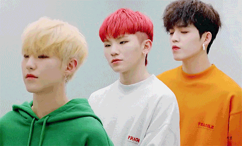 사진 속의 3명이 바로 퍼포먼스팀 리더 호시, 힙합팀 리더 에스쿱스, 보컬팀 리더 우지입니다!