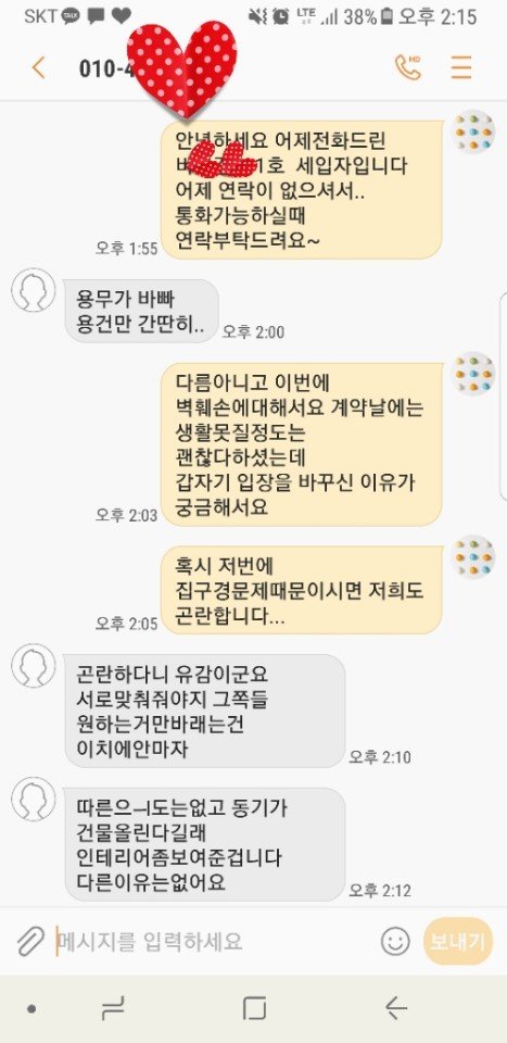 열받아서 신랑에게말하니 신랑이 집주인과통화해서 잘해결됬습니다