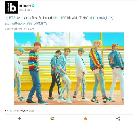 한국어로 부른 노래가 세계에서 가장 큰 음악차트에 랭크되었다는 것이 무엇보다 가장 자랑스럽습니다♡