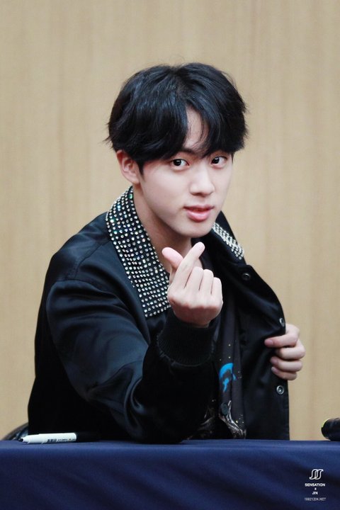 석진이가 비장한 표정을 짓는다면 곧 가슴에서 하트가 튀어나온다는 징조고 남준이가 갑자기 수줍은 표정을 짓는다면 곧 손키스가 날라온다는 징조입니다 미리 심장 부여잡으세요 그전에 팬싸좀 가보자
