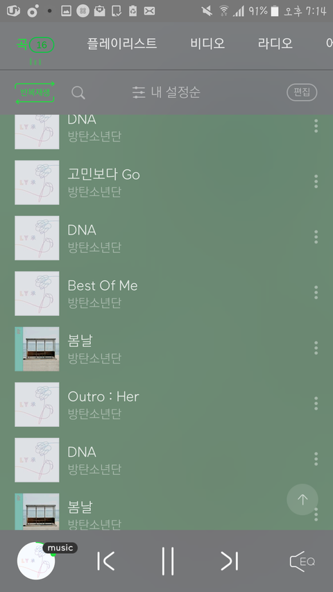 이거처음하는건데맞아??반복재생누르면안되는건가??총16곡제대로넣었어!!근데왜이전앨범노래도넣는거야??