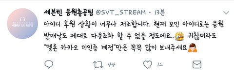 제발 좀 하자 컴백할 때마다 음원성적으로 뚜드려 맞는거 지겹지 않니?ㅠㅠㅠㅠㅠ 모금은 못하더라도 이건 하자