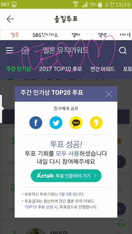 스밍은 컴으로. 튭은 퍼12틀앱 깔아서 애들 지하철광고튭도하고 여러개 함께 투표할수있어 편함. 안깐이삐들 이용해♡