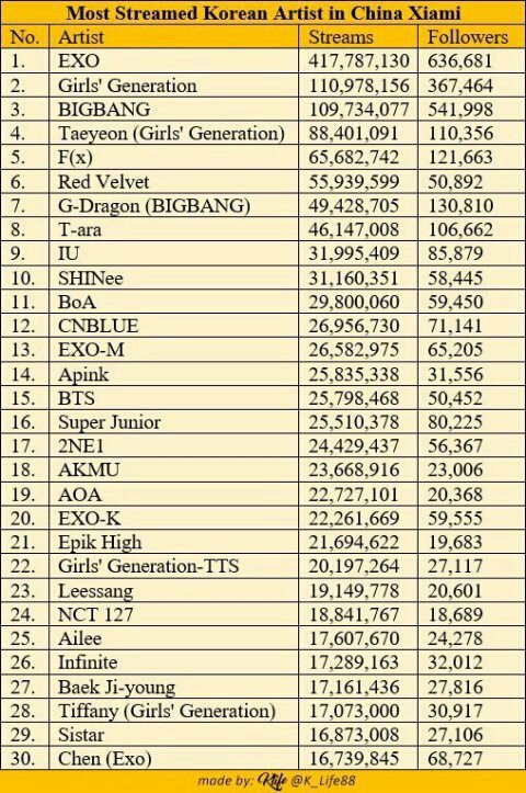 1. 2016 한해 스트리밍 엑소 4억으로 1위