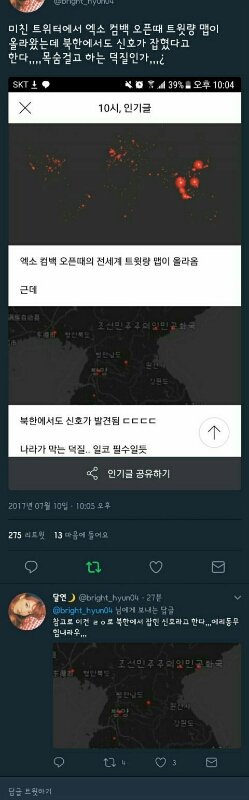 #kokobop 해시태그가 생긴 후 북한에서 신호가 잡힘