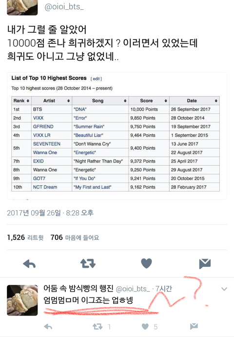 이러잖아 너네 자꾸 타가수랑 비교하면서 띄우는것 밖에는 못해? 왜너희 성적으로 홍보안하고 타가수 머리채 잡냐고ㅋㅋㅋㅋㅋ 웃기지도 않아
